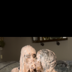 Jinxxx was surprised by xjenniferxxx with a big sloppy cream pie to the face